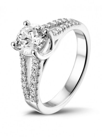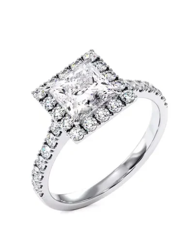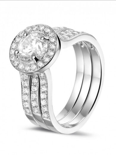 Cette bague de fiançailles en or 18K recyclé ou en platine est un fleuron de la haute joaillerie parisienne. Le diamant central est rehaussé d’un double halo qui le magnifie en donnant l’impression qu’il est beaucoup plus volumineux. Un serti de diamants léger et régulier mettra en valeur votre main pour toutes les occasions. Portez cette bague au quotidien comme dans les cocktails les plus intimistes.